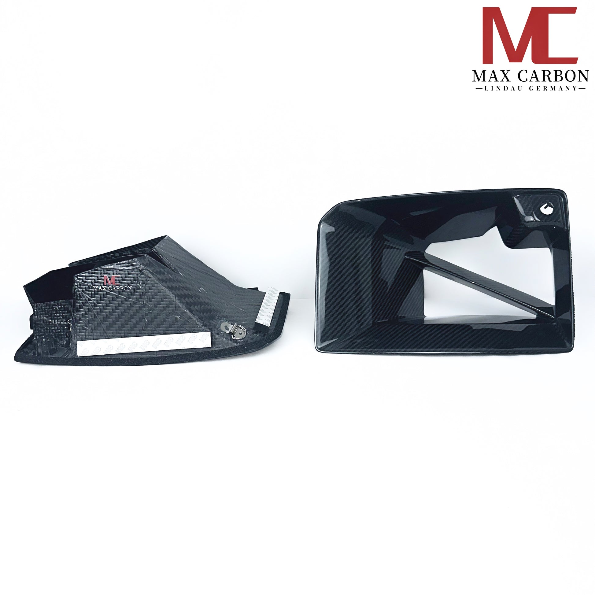 Alle MAX CARBON Produkte werden standardmäßig mit drei Schichten Klarlack und UV-Schutzlackierung geliefert. Einige Teile für den Motorsport werden ohne Lackierung geliefert. Bitte Artikelbeschreibung beachten